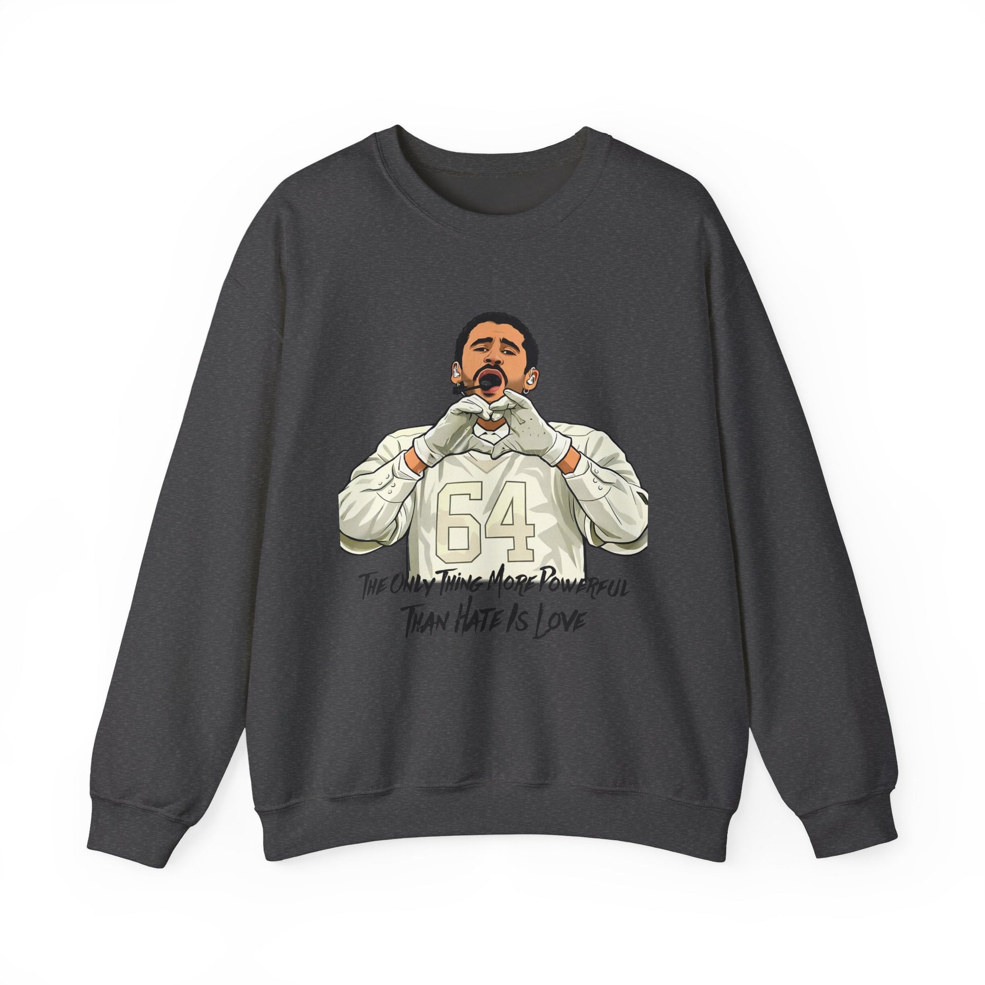 Crewneck Sweatshirt — 'The Only Thing More Powerful Than Hate Is Love' Football Heart Gesture